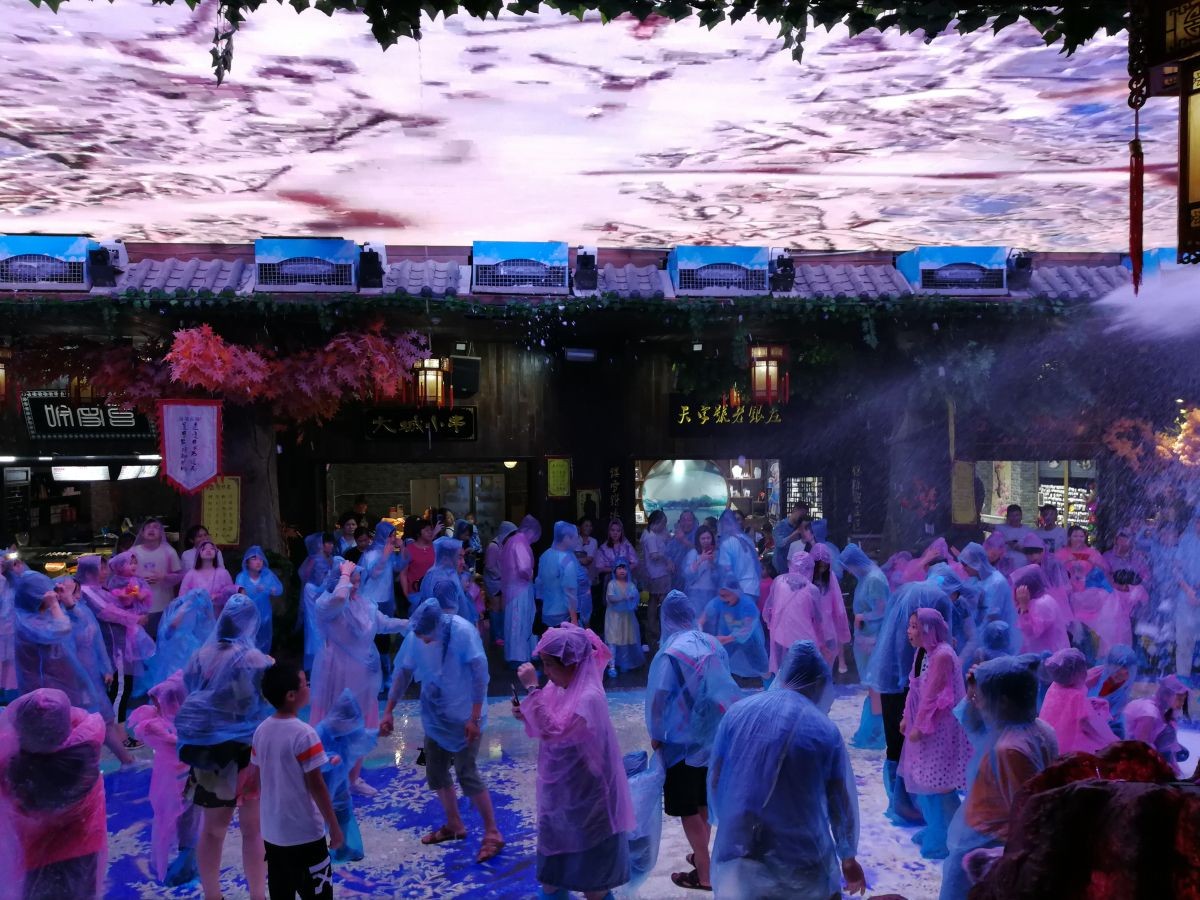 而南楚古城的天地巨幕演出場地安裝了16臺飄雪機和2臺暴雪機。這些天降大學的飄雪場景及游龍戲鳳的暴雪噴雪場景,給游人帶來極致的冰爽刺激感受!形成了巨佳的口碑傳播和社媒傳播力,為項目持續關注度帶來了強進動力。