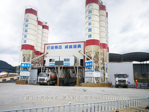 廣西新柳南(柳州-南寧)高速公路第11、12標段、廣西長長路橋公司采購我司生產的混凝土專用冷水機,為混凝土攪拌站配套冷水峰溫,確保