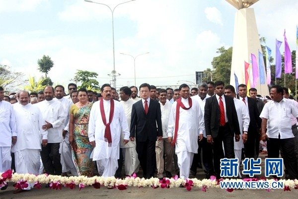 斯總統(tǒng)拉賈帕克薩為科倫坡國際機場高速路開通儀式揭幕(圖片摘自新華網(wǎng))