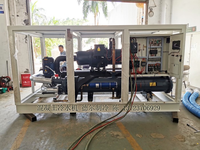 我司德爾制冷開發的混凝土專用冷水機組采用國際名牌壓縮機,結合PLC全自動控制系統,根據用戶冷量、溫度需求進行設計,將冷水機的生產能力與客戶的實際生產需求準確匹配,將冷凍水溫度進行精確控制,既確保生產,又不產生浪費,節能環保,節電增收。同時,我司生產的混凝土冷水機操作簡單,性能可靠。
